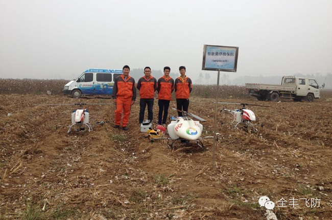 在棉花田里,自走式噴霧機(jī)、自走式旋耕機(jī)、大型棉花收采機(jī)、大型植保拖拉機(jī)及全豐航空植保農(nóng)用無人直升機(jī)齊上陣,實(shí)現(xiàn)對(duì)棉花從種到收的全程機(jī)械化作業(yè)。植保專家從作業(yè)速度、作業(yè)時(shí)間、作業(yè)效果比較分析,農(nóng)用無人機(jī)在病蟲害防治方面具有絕 對(duì)的優(yōu)勢(shì),同時(shí)因遠(yuǎn)距離操作,避免了農(nóng)藥對(duì)人體的傷害,飛防專用藥劑的高濃度、低容量、簡包裝具備生態(tài)環(huán)保優(yōu)勢(shì)。同時(shí),它的出現(xiàn)解決了棉花后期大型機(jī)械無法進(jìn)地作業(yè)或者進(jìn)地作業(yè)將傷害棉花產(chǎn)量的問題。