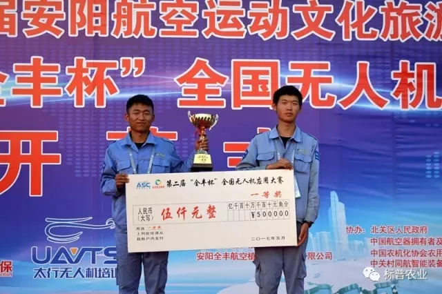 隨后進行的無人機應(yīng)用大賽更是扣人心弦,引人入勝。大賽邀請18家全國各知名無人機企業(yè)參賽。比賽內(nèi)容為農(nóng)用植保無人機在作業(yè)時要求飛行軌跡精準,指定飛行高度和指定飛行速度情況下沿預(yù)定軌跡進行噴灑作業(yè)時方能滿足作業(yè)要求,達到噴灑效果。參賽的無人機根據(jù)要求的速度、高度作業(yè)完畢后,由測量系統(tǒng)實時給出該架次作業(yè)軌跡的飛行參數(shù),計算出該架次飛行的速度偏離度和高度偏離度,綜合二者分數(shù)后對該參賽無人機進行排名。經(jīng)過激烈角逐,河南標普農(nóng)業(yè)科技有限公司和安陽全豐航空植??萍脊煞萦邢薰?/span>分獲一、三等獎。