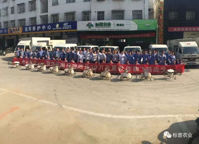 此次飛防是繼安陽百萬畝統(tǒng)防統(tǒng)治后的又一大規(guī)模作業(yè)。為了順利完成任務(wù),8月15日,標(biāo)普農(nóng)業(yè)總部飛防大隊(duì)和全國(guó)各地標(biāo)普分公司飛防隊(duì)出動(dòng)全豐植保無人機(jī)120余架,飛手及助手等近300人奔赴泗縣,要和病蟲害打一場(chǎng)徹底的殲滅戰(zhàn)。