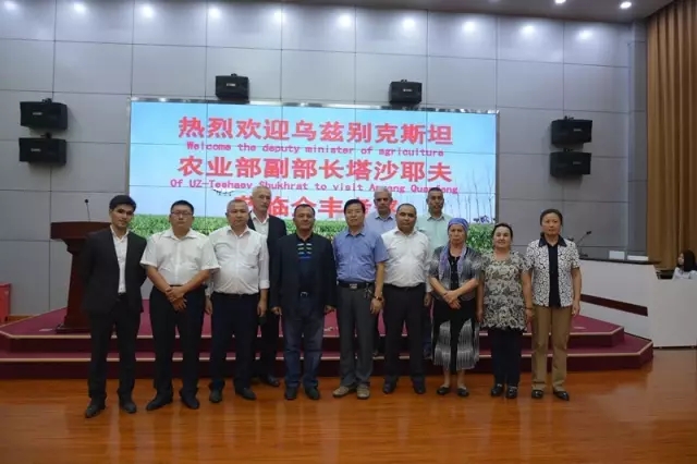 9月13日下午,安陽全豐航空植??萍脊煞萦邢薰居瓉硪晃贿h道而來的客人——烏茲別克斯坦農(nóng)業(yè)和水利部副部長塔沙耶夫。烏茲別克斯坦農(nóng)業(yè)和水利部考察團一行就中烏兩國在棉花種植研究方面開展深入合作而來,并為下一步中烏棉花聯(lián)合研究實驗室建設(shè)方案進行交流。
