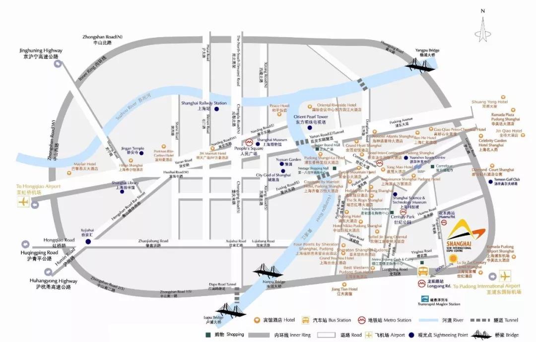 展館位于浦東兩條環(huán)線的交叉點,行車從市中心橫跨南浦大橋直達(dá)。