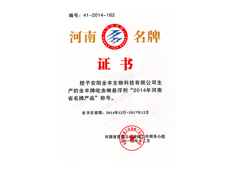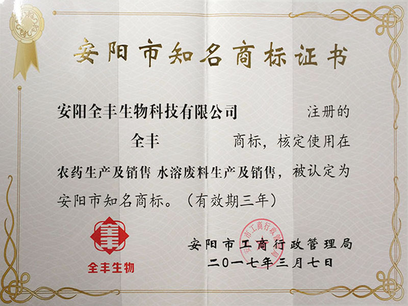 2017年度榮獲”安陽(yáng)市知名商標(biāo)品牌全豐“
