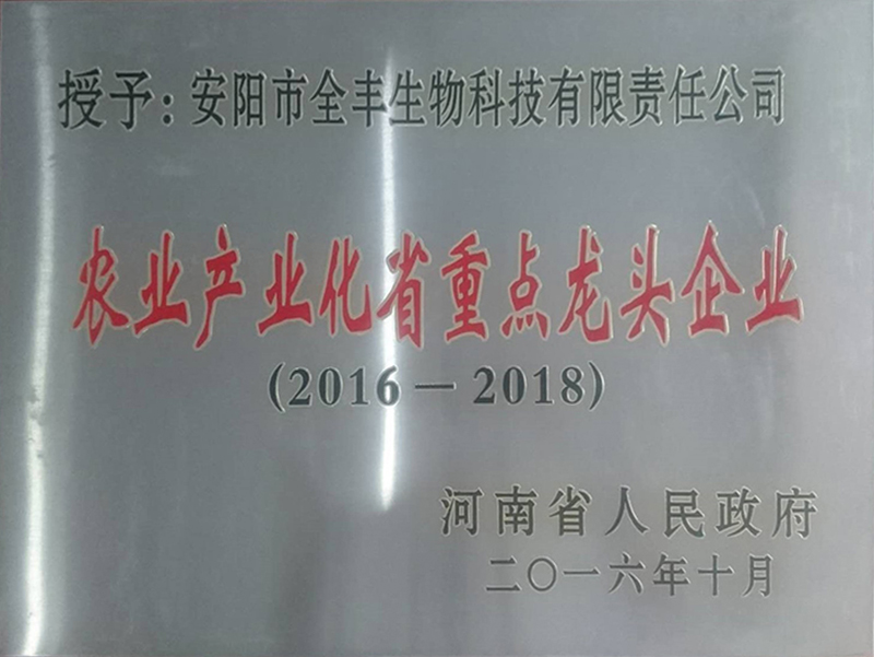 榮獲2016年-2018年“農(nóng)業(yè)產(chǎn)業(yè)化省重 點(diǎn)龍頭企業(yè)”