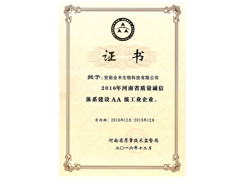 榮獲2016年-2019年“省質(zhì)量誠(chéng)信2A企業(yè)證書(shū)”