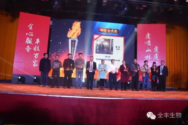 晚餐過(guò)后,激動(dòng)人心的時(shí)刻到來(lái)了,一年一度的“金虎獎(jiǎng)”頒獎(jiǎng)盛典正式開(kāi)始。向長(zhǎng)期以來(lái)支持安陽(yáng)全豐技術(shù)服務(wù)工作的單位和個(gè)人頒發(fā)“金虎獎(jiǎng)”,并向業(yè)務(wù)突出的銷(xiāo)售精英頒發(fā)獎(jiǎng)品。榮譽(yù)承載著辛勤的歲月,勇往直前是我們當(dāng)下的腳步。2017年我們來(lái)了,我們相信未來(lái)是屬于“全豐家人們”的未來(lái),2017年“再創(chuàng)新高”。