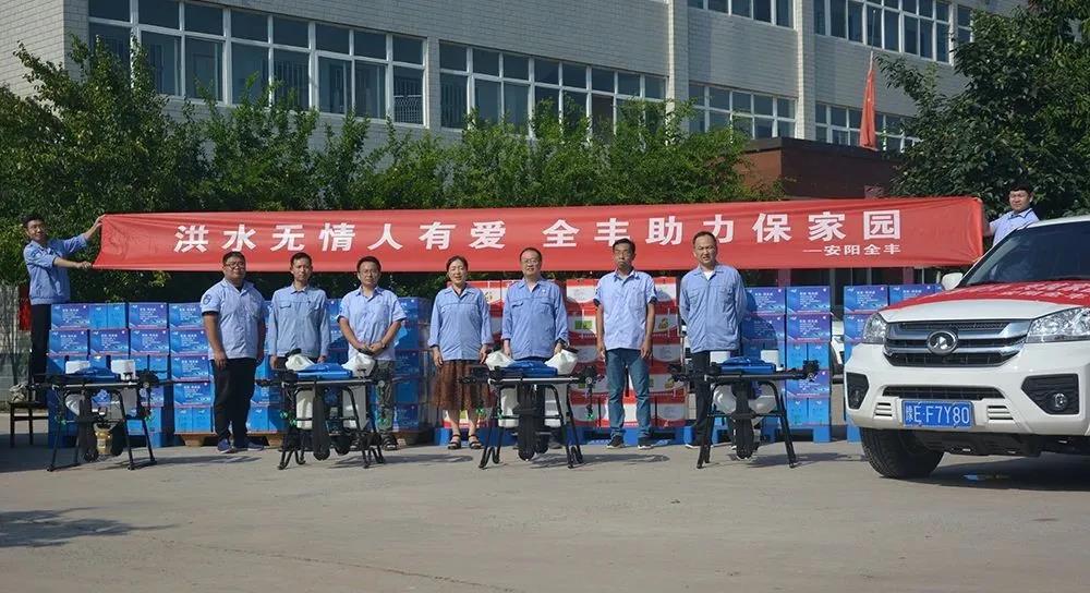 安陽(yáng)全豐在自身蒙受財(cái)產(chǎn)損失的情況下,不忘企業(yè)使命,勇于承擔(dān)社會(huì)責(zé)任,心系受災(zāi)地區(qū),開展生產(chǎn)自救的同時(shí),公司董事長(zhǎng)、總經(jīng)理王志國(guó)第一時(shí)間帶領(lǐng)員工積極籌措物資,緊急行動(dòng)起來(lái),聯(lián)系湯陰縣、安陽(yáng)縣、北關(guān)區(qū)、文峰區(qū)當(dāng)?shù)丶t十字會(huì),向受災(zāi)嚴(yán)重地區(qū)捐贈(zèng)施必達(dá)、金處方、S誘抗素、“蚊蠅一夏凈”等物資將近50余萬(wàn)元,并免費(fèi)提供配套的無(wú)人機(jī)消殺服務(wù)。