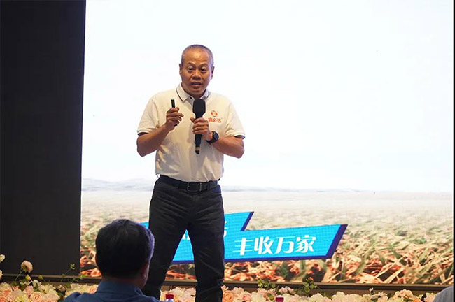 安陽市喜滿地肥業(yè)有限責(zé)任公司董事長崔俊儀分享了“優(yōu)質(zhì)稻用肥管理要點(diǎn)”。